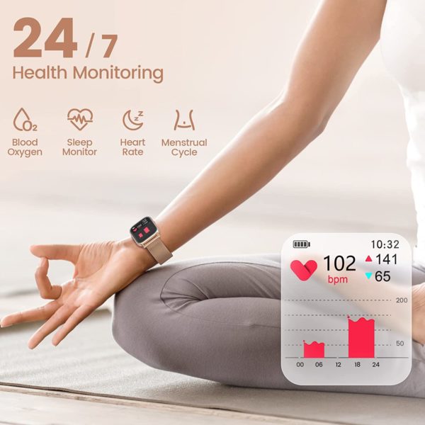 - 24/7 HEALTH HELPER – Built-in BIO1.0 pro chip to monitor your heart rate all day. Based on time asleep and sleep score helps you better understand your sleep quality(deep sleep, light sleep, REM time). Detect blood oxygen concentration, predict women’s menstrual period (menstrual period, predicted menstrual period, ovulation period) and track all your daily activity.