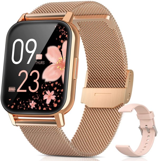 OBKBO Smart Watches for Women, 1.69″ Smart Watch for Android Phones and iPhone Compatible, IP68 Waterproof Fitness Tracker with Heart Rate, Blood Oxygen, Sleep Monitor, Menstrual Reminder, Watch Gold