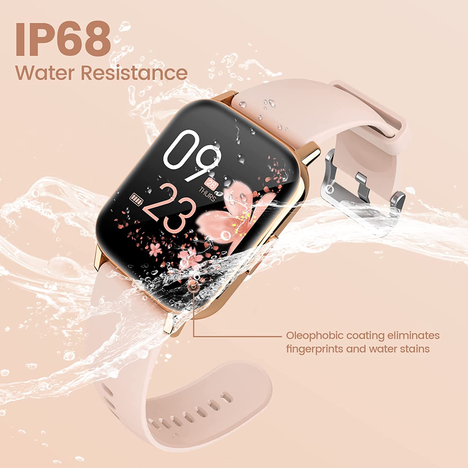 OBKBO Smart Watches for Women, 1.69″ Smart Watch for Android Phones and iPhone Compatible, IP68 Waterproof Fitness Tracker with Heart Rate, Blood Oxygen, Sleep Monitor, Menstrual Reminder, Watch Gold