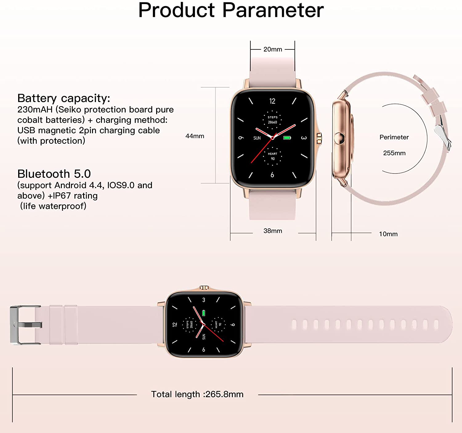 • Smart Watch 2021(Call Receive/Dial), 1.72 in HD Full Touch Screen Smartwatch Fitness Tracker with Call/Text/Heart Rate/Blood Pressure/Sleep Step Tracking, Fitness Watch for Android/iOS, Women Man