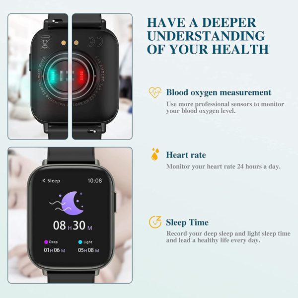 Smart Watches for Men Women,Fitness Tracker with Heart Rate Monitor Sport AMOLED Display Swimming Waterproof Watch for Android/ iOS/Phones, Black
