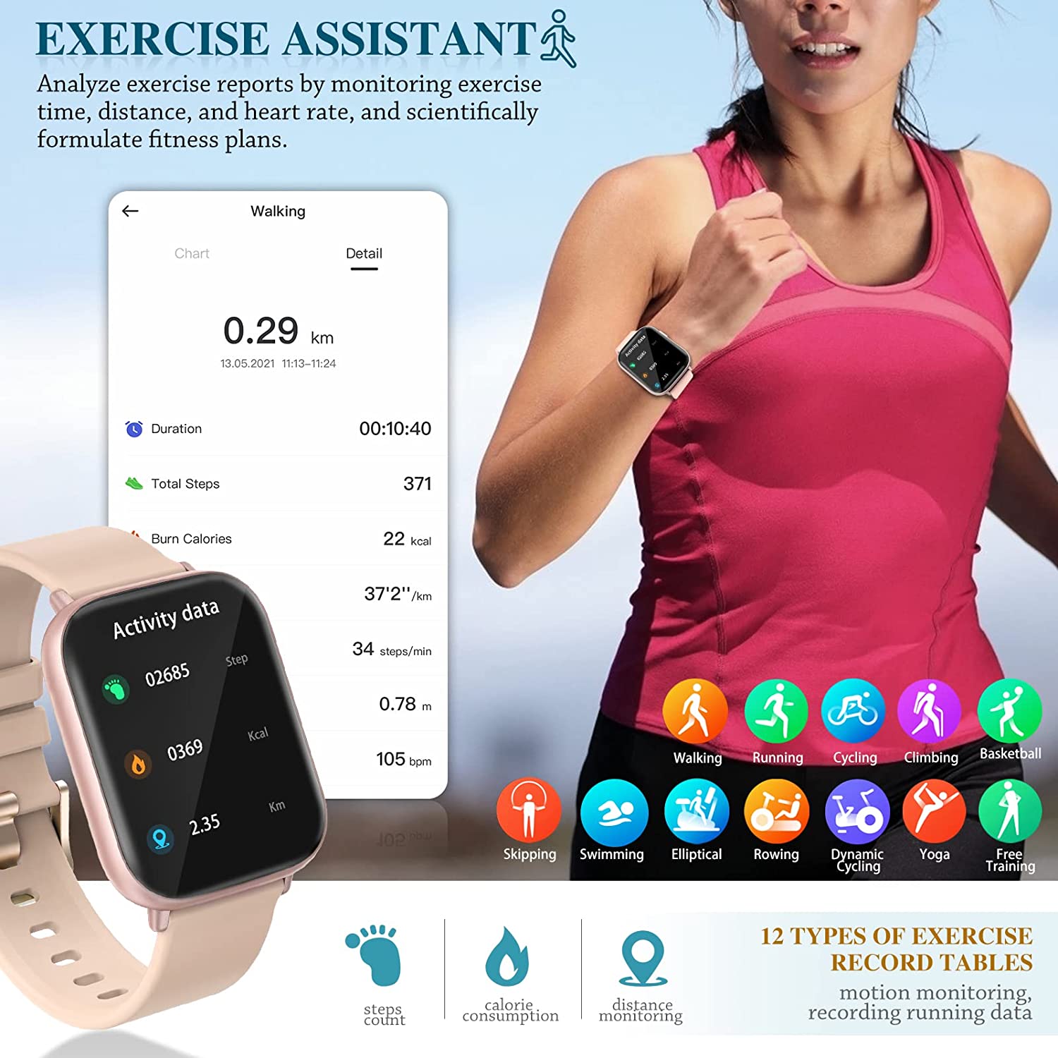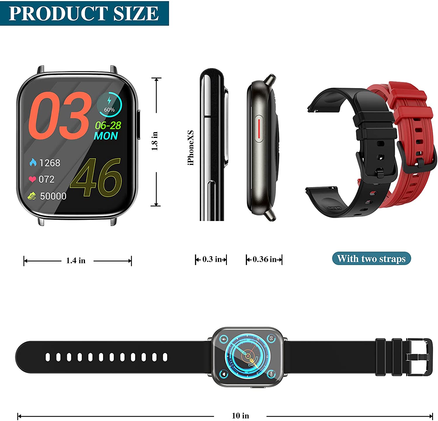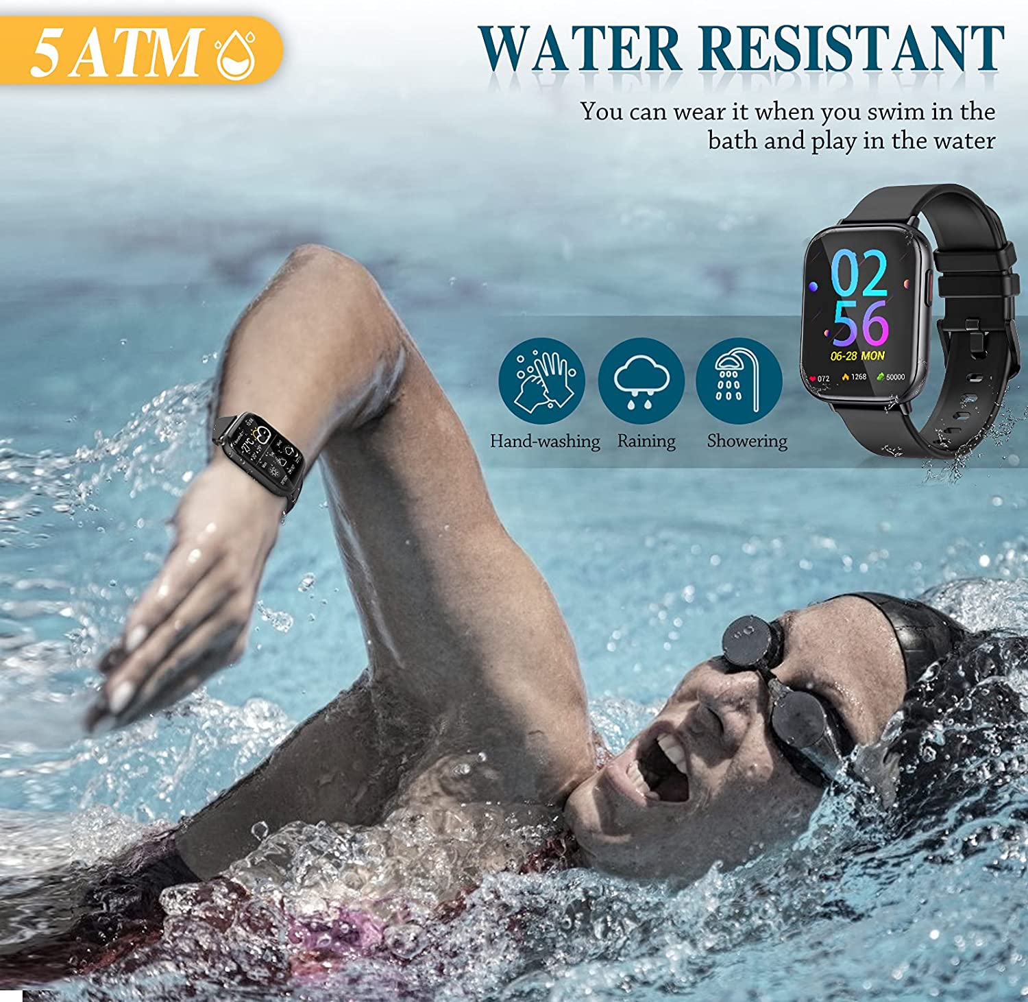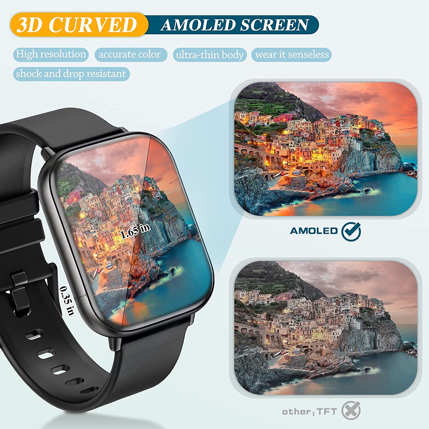 Smart Watches for Men Women,Fitness Tracker with Heart Rate Monitor Sport AMOLED Display Swimming Waterproof Watch for Android/ iOS/Phones, Black